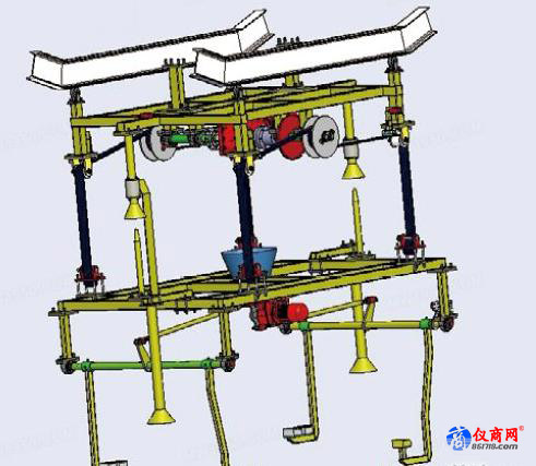 基于現(xiàn)行電動葫蘆與剪刀叉吊具組合存在的問題,結(jié)合生產(chǎn)車間的實際情況,經(jīng)過調(diào)研和論證,決定在車身下部線地板總成吊運自動小車輸送系統(tǒng)上嘗試使用四點帶升降吊具,取代電動葫蘆與剪刀叉的吊具組合,以嶄新的起吊方式實現(xiàn)地板總成從下部線至主焊線的吊運工作。