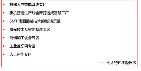 領(lǐng)域涵蓋智能機器人、工業(yè)自動化、系統(tǒng)集成及核心部件、激光、SMT及周邊設(shè)備、工業(yè)互聯(lián)網(wǎng)、人工智能及其他智能裝備等七大主題,集中在1、2、3、4號館展示,是中國華南地區(qū)制造裝備領(lǐng)域de風(fēng)向標!