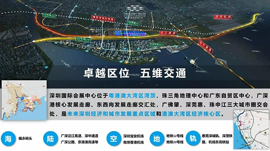 從區(qū)位上看,深圳國際會展中心地處粵港澳大灣區(qū)灣頂,廣佛肇、深莞惠、珠中江三大城市圈交會處,廣深港核心發(fā)展走廊、東西向發(fā)展走廊交會處,緊挨廣深沿江高速,毗鄰空港、軌道等交通樞紐,區(qū)位交通極其便利。